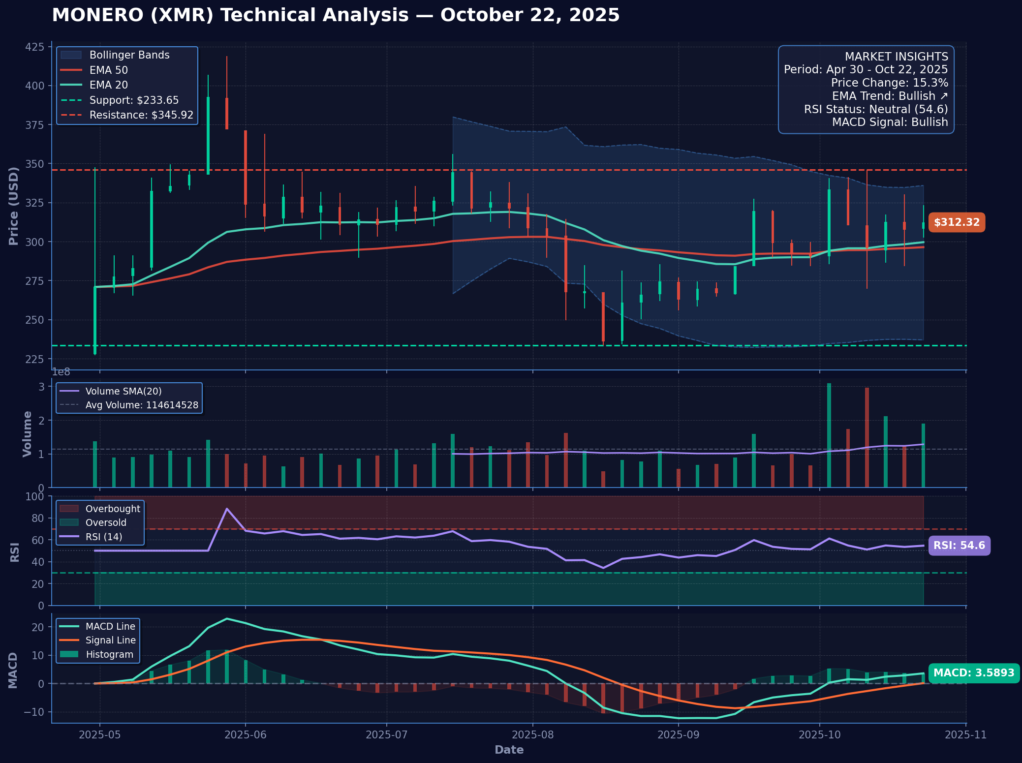 Momentum: bullish. Short-term trend: uptrend. As long as XMR stays above 233.65, setup favors bulls. A close below 228.98 would weaken the setup.