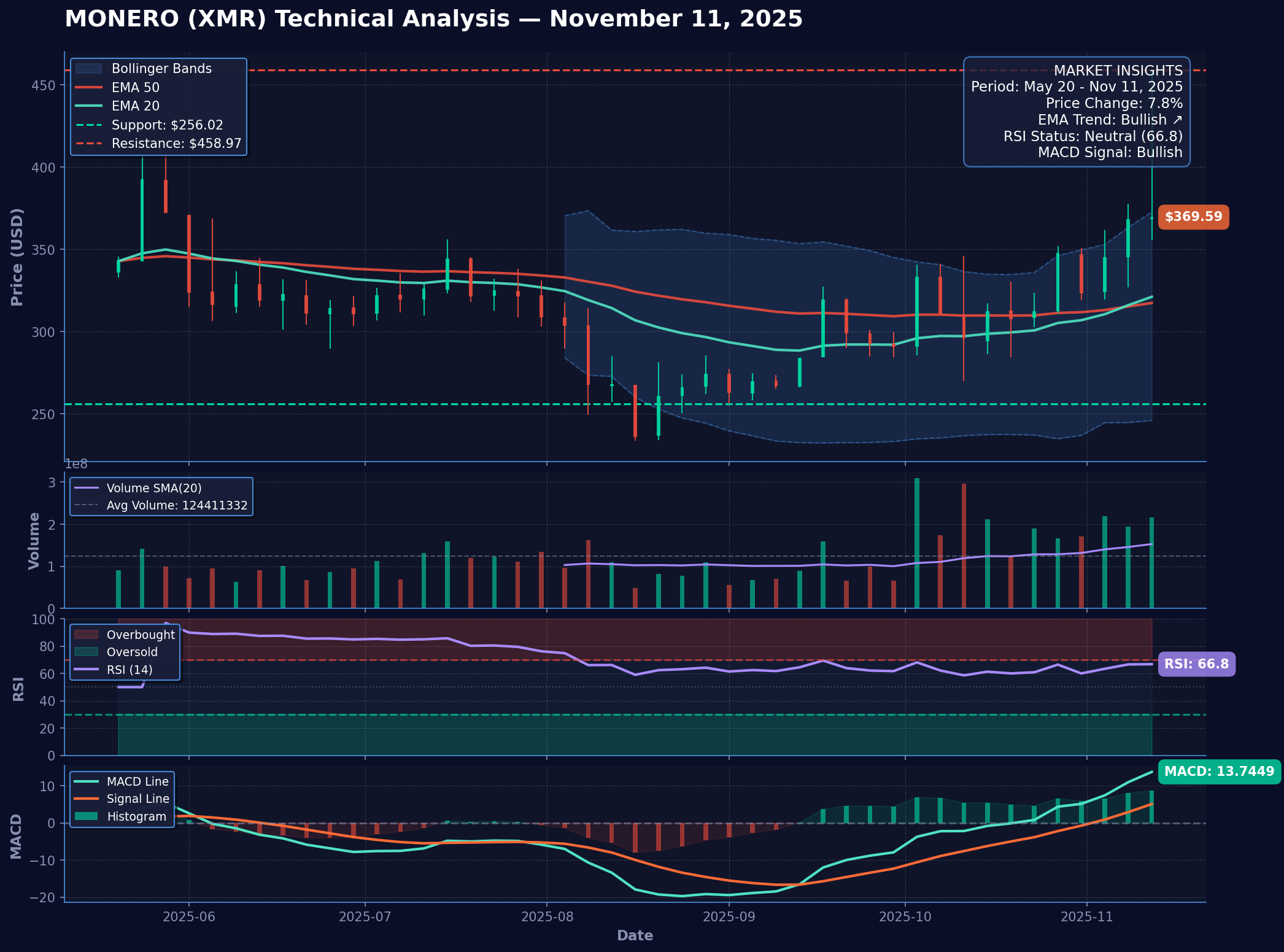 Momentum: bullish. Short-term trend: uptrend. As long as XMR stays above 256.02, setup favors bulls. A close below 250.90 would weaken the setup.