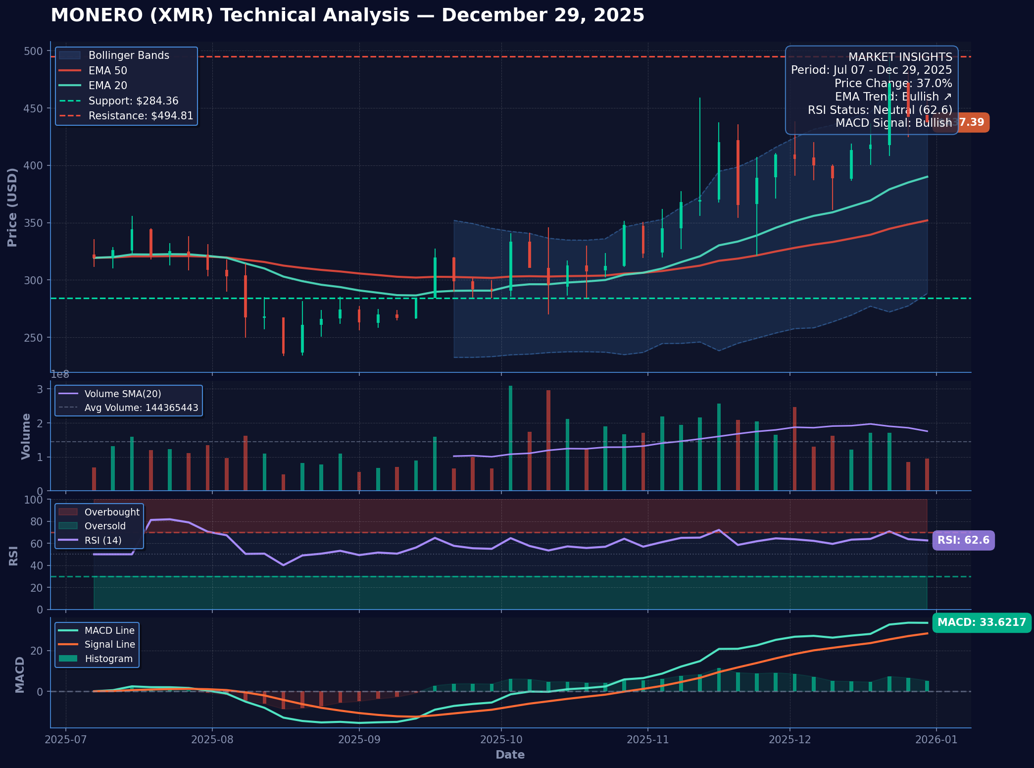 Momentum: bullish. Short-term trend: uptrend. As long as XMR stays above 284.36, setup favors bulls. A close below 278.67 would weaken the setup.