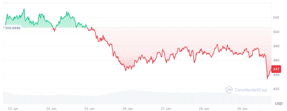 | Price | $448.24, -11.41% in 7 days |