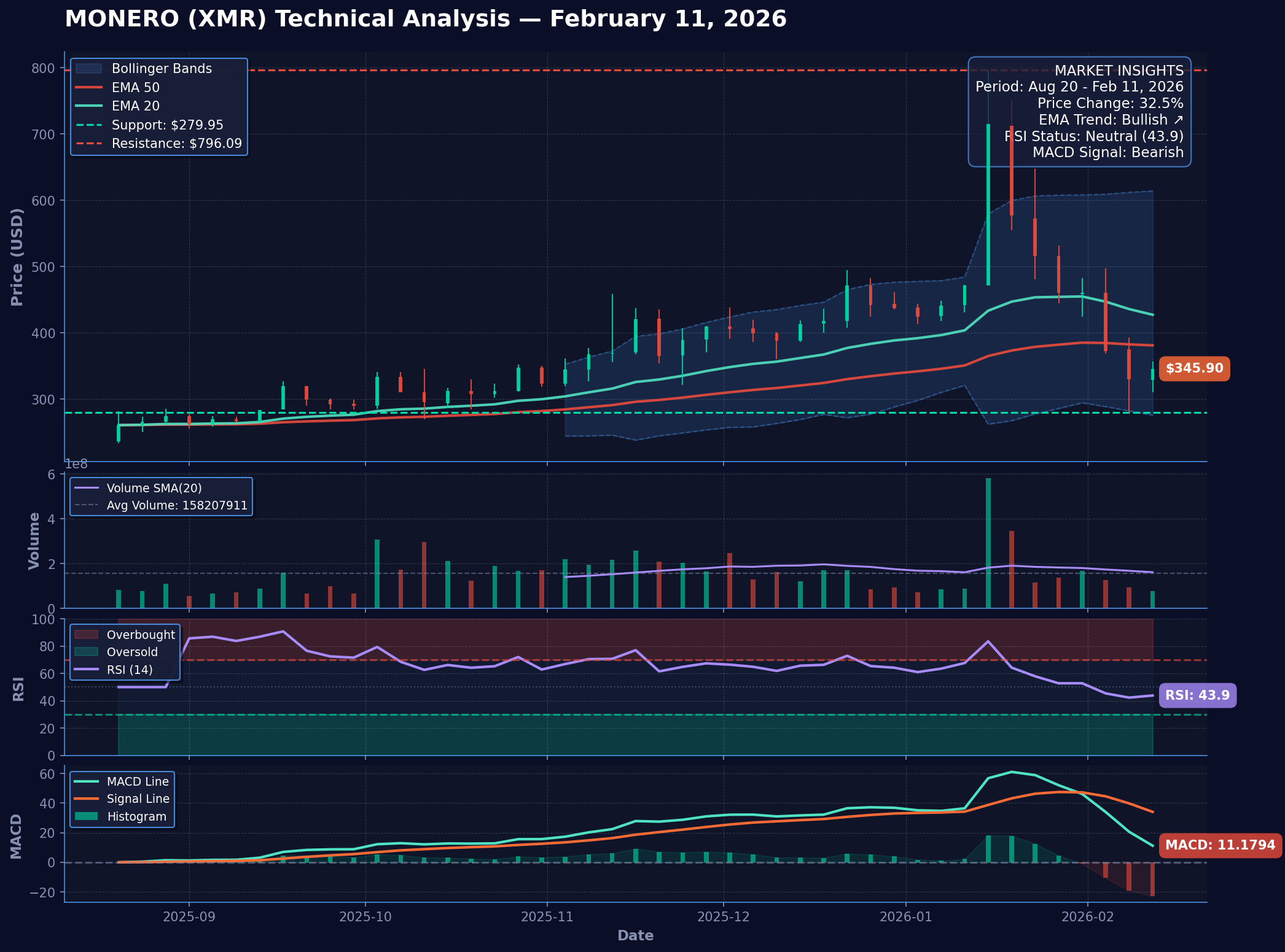 Momentum: bearish. Short-term trend: uptrend. As long as XMR stays above 279.95, setup favors bulls. A close below 274.35 would weaken the setup.